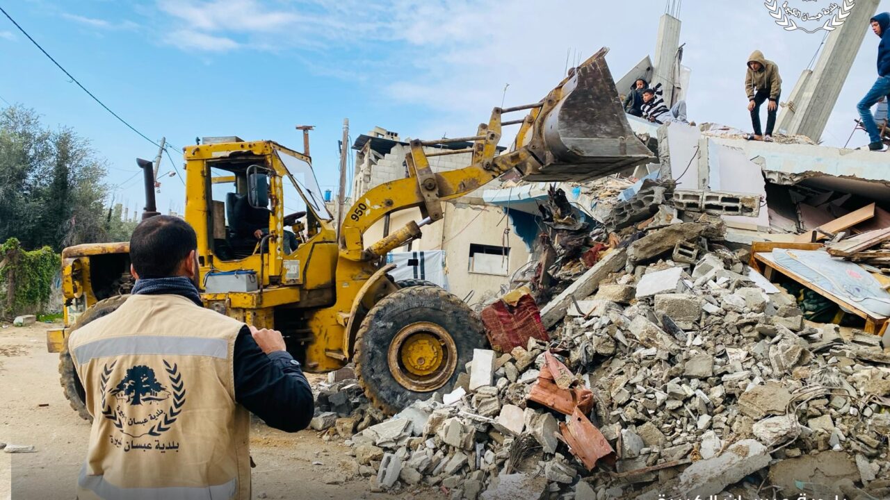 تواصل طواقم بلدية عبسان الكبيرة في تنفيذ حملة ازالة الركام من الطرق والشوارع في حي ابو طعيمة