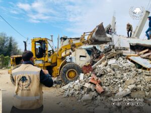 • تواصل طواقم بلدية عبسان الكبيرة في تنفيذ حملة ازالة الركام من الطرق والشوارع في حي ابو طعيمة